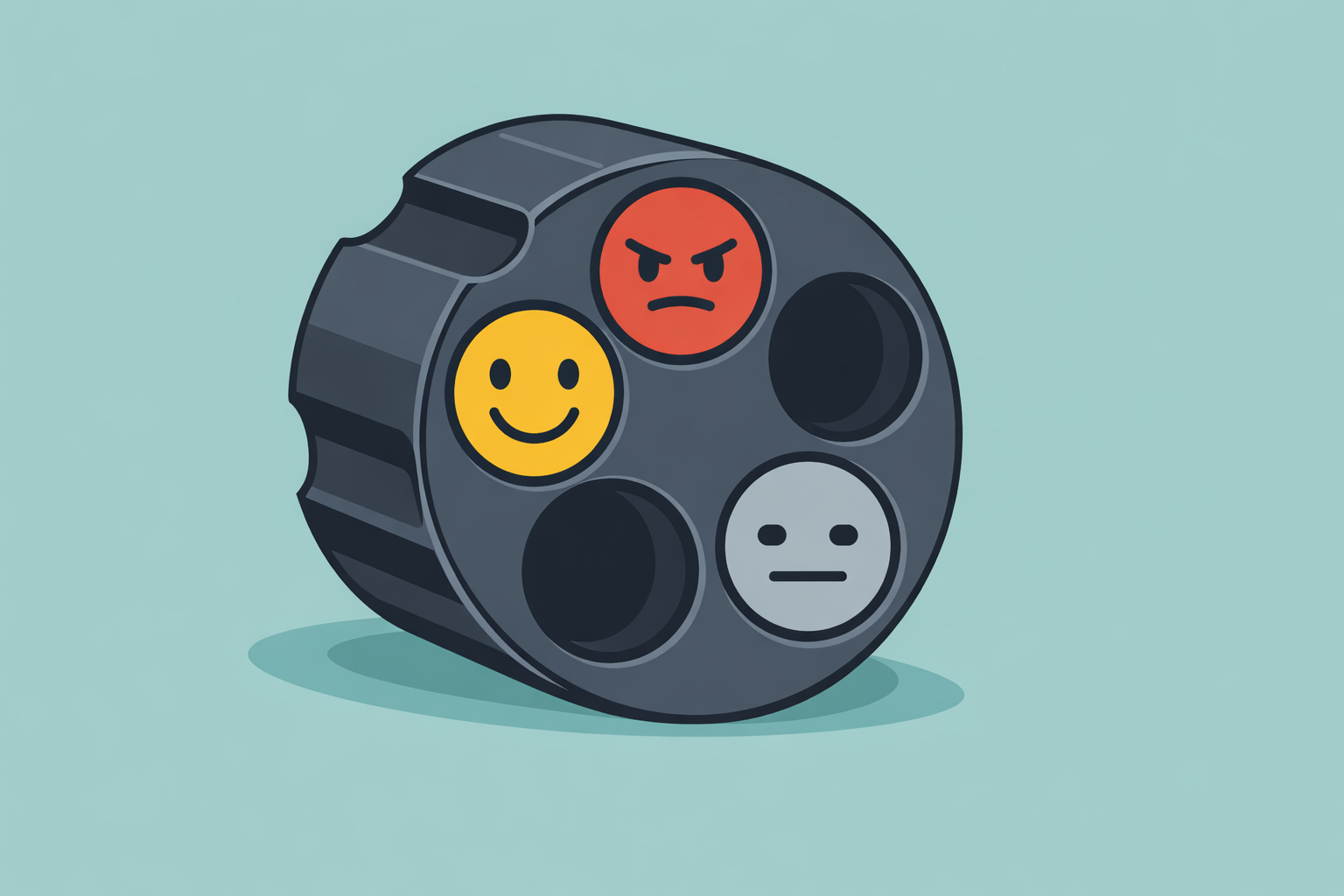 С чем ассоциируется этот образ? Когда я радостен, еда ощущается вкусной, встреча с друзьями очень приятна, даже взгляд на небо радостен. Когда я грустен, когда в депрессии, та же самая еда не приносит радости, встреча с теми же самыми людьми, компании которых я наслаждался вчера, сегодня становится обузой. И подобно пуле в револьвере, одна сменяется другой: одно, второе, третье. Я тогда назвал это мини-шизофренией.